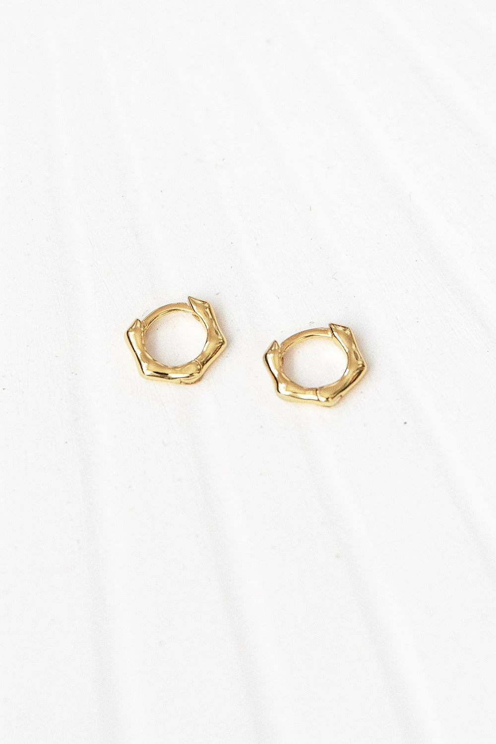 The super cute 18K Dakota Wave Huggies are a mini huggie 18 karat gold plated style featuring wave detail. Perfect for side and cartilage piercings!