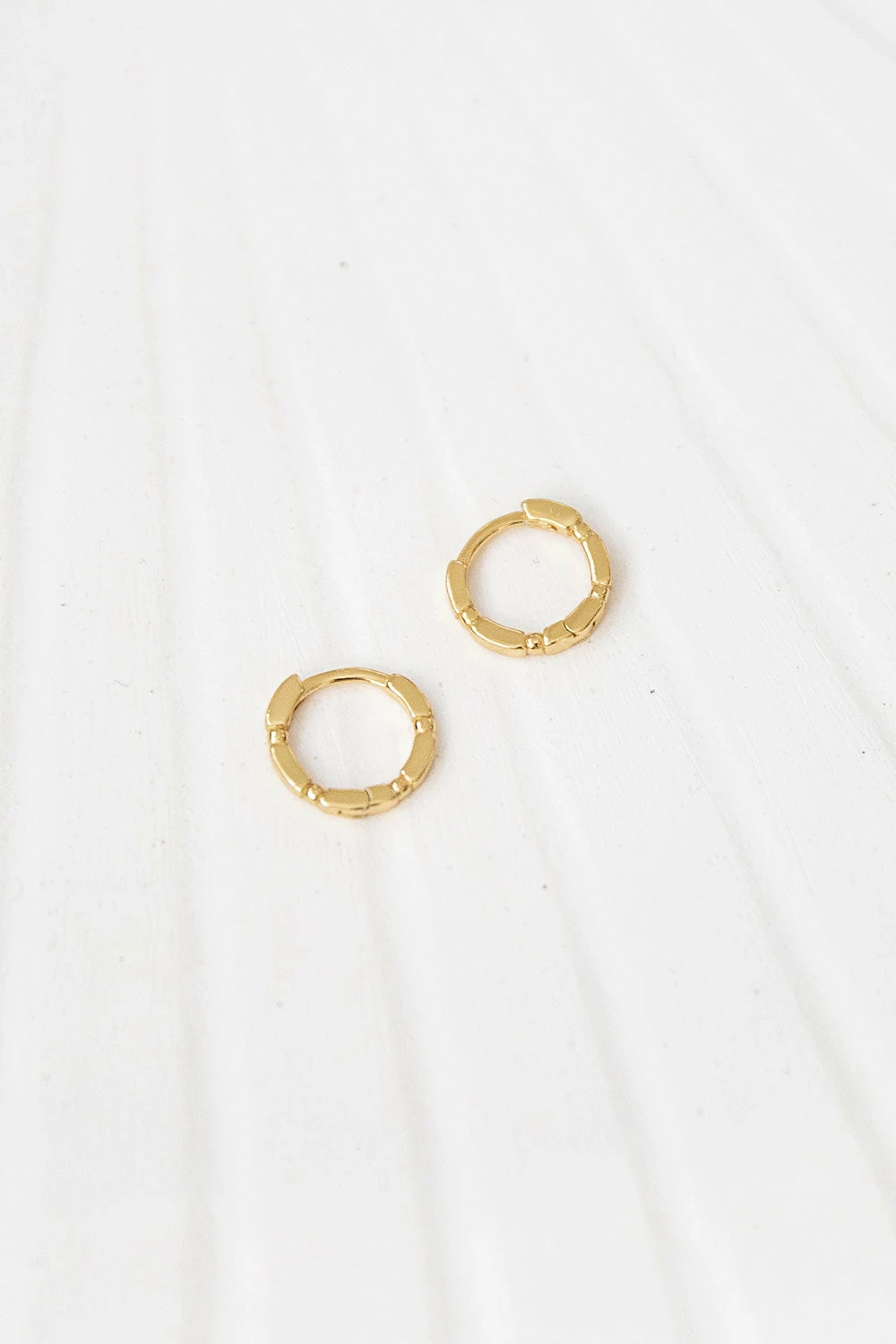 The perfect stackable pair! The 18K Lulu Huggies are a mini huggie style plated in 18 karat gold and feature textured details.