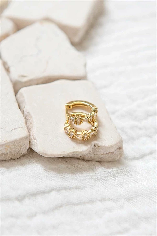 The simple and chic 18K Vine Earrings are 18 karat gold plated and feature gemstone detailing. Perfect for stacking!