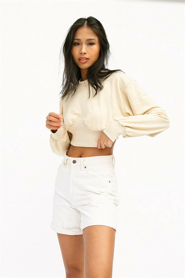 Comfort meets style with the Allara Top! It is made from a sweater fabric in a honey beige hue and features contrast rib detailing at neckline, cuffs and waist, underwire design detail and full length sleeves. We love pairing ours with high waisted shorts and the Mini Bead Handle Bag! Exclusively designed by Sabo.