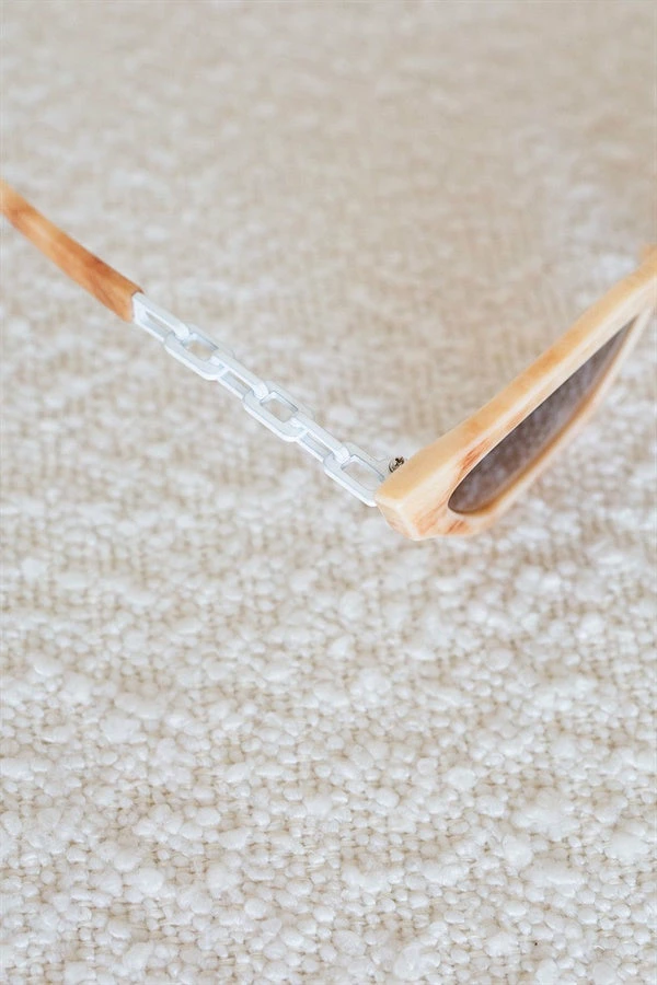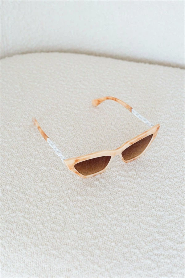For the fashion forward! The Almia Sunglasses feature bold creamy marble cateye frames, brown lenses and white chain detailing at arms.