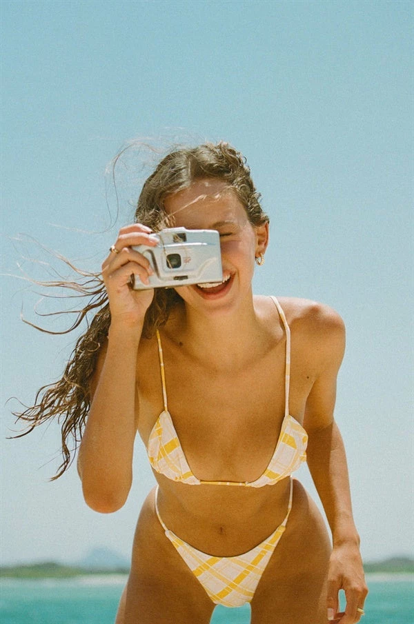 *THIS IS A FINAL SALE ITEM* The Amarilla Base Bottom is made from a stretchy fabric with our exclusive check print. They are a flattering cheeky cut and feature string sides and can be worn mid or high waisted. Perfect paired with the Amarilla Tie Bandeau! Exclusively designed by Sabo.