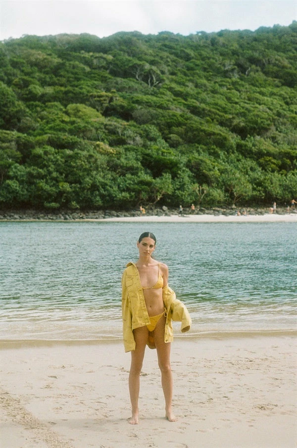 The Antigua Bottoms are made from a swimwear fabric with brown signature FT. Louisa printed throughout. They are a mid-high waisted style featuring tie sides. Pair with the Antigua Tri Top! By FT. Louisa.