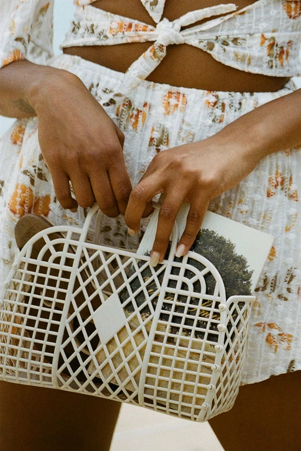 The travel friendly Artique Basket Bag features a lattice design and mini handles. A colour for every outfit!
