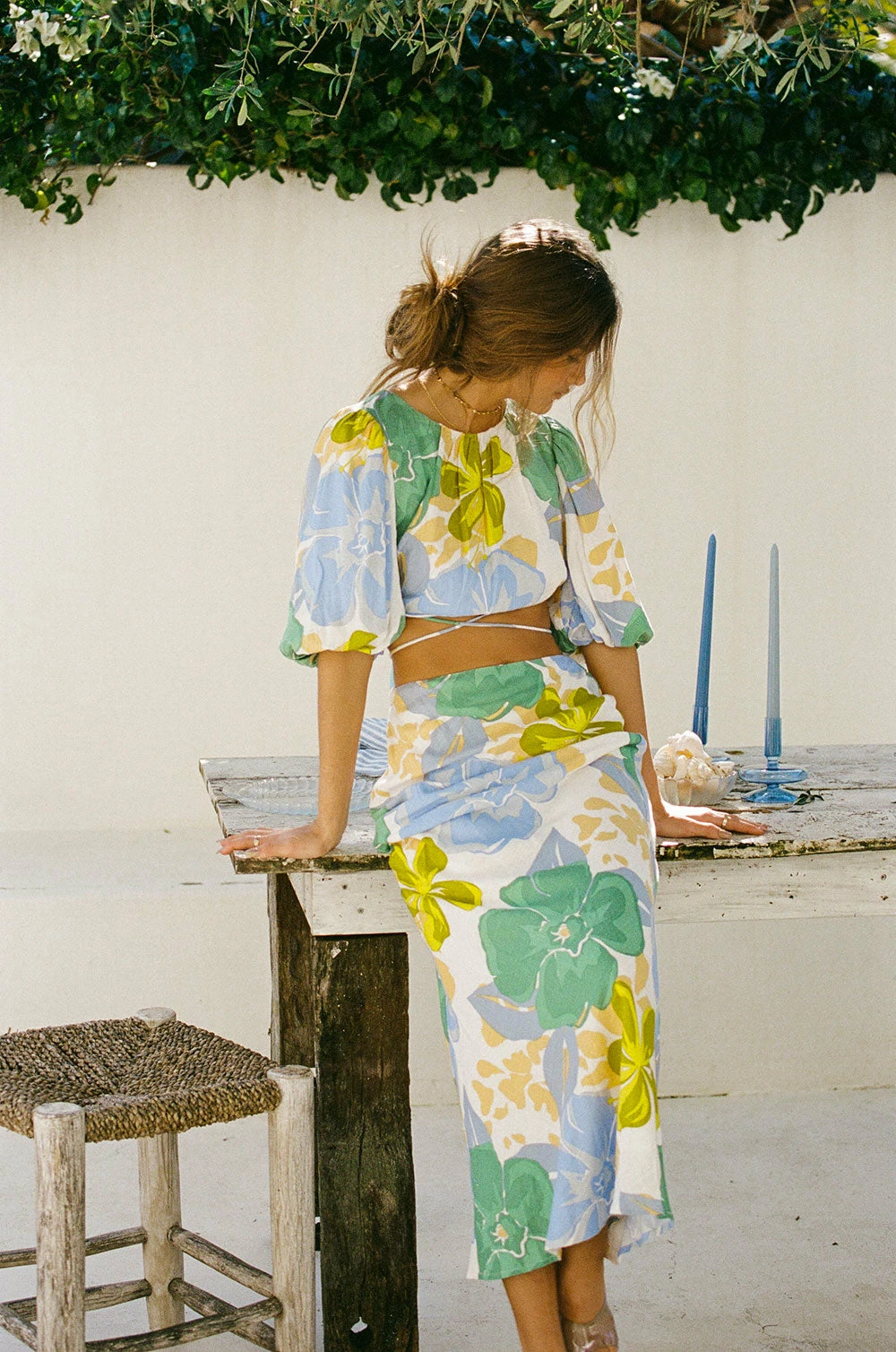 Step into your next event in style with the Bailee Maxi Skirt, made from a high quality linen blend fabric with our exclusive bold aqua floral print. It is a high waisted style featuring a super flattering flared hem. Get the look with the Bailee Puff Top! Designed exclusively by Sabo.