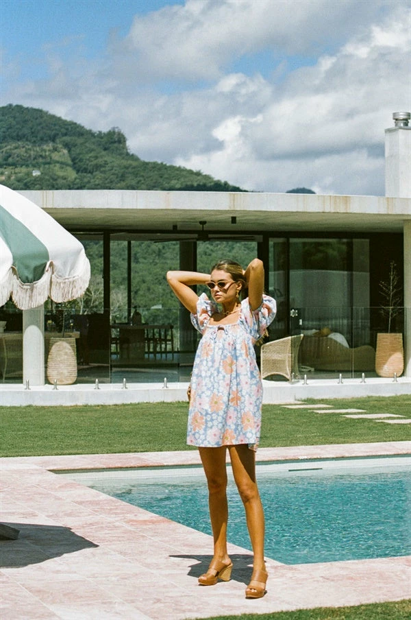 Drop 1 of our brand new Her Haven collection coming in hot! The Bambina Dress is made from a high quality linen cotton blend fabric with our exclusive Sky Floral print. It is a babydoll style featuring short puff sleeves, shirred panel across neckline and tie at centre front. Get the look with the Kumi Bag and Tondara Hoop Earrings! Exclusively designed by Sabo.