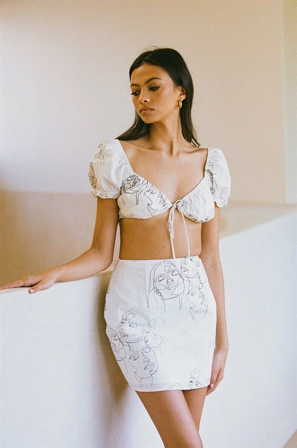 *THIS IS A FINAL SALE ITEM* Perfect for summer party season, the Bandera Skirt is made from a high quality natural cotton fabric with our exclusive silhouette print throughout. It is a high waisted mini style perfect paired with the Bandera Top and Lattice Mini Backpack. Designed exclusively by Sabo.