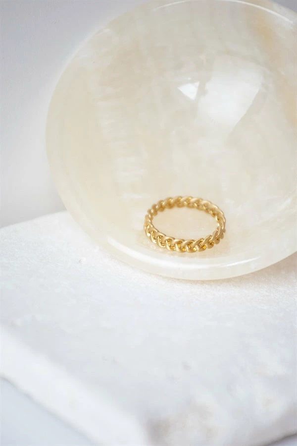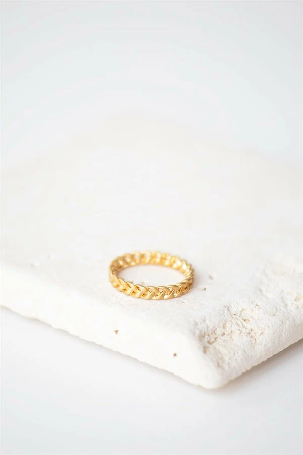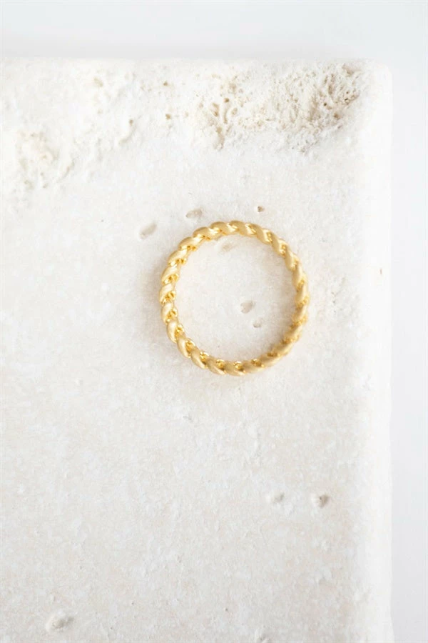 The Braided Koh Ring is gold toned and features a thin braided band. Keep it simple and wear it alone or use it in a stack!