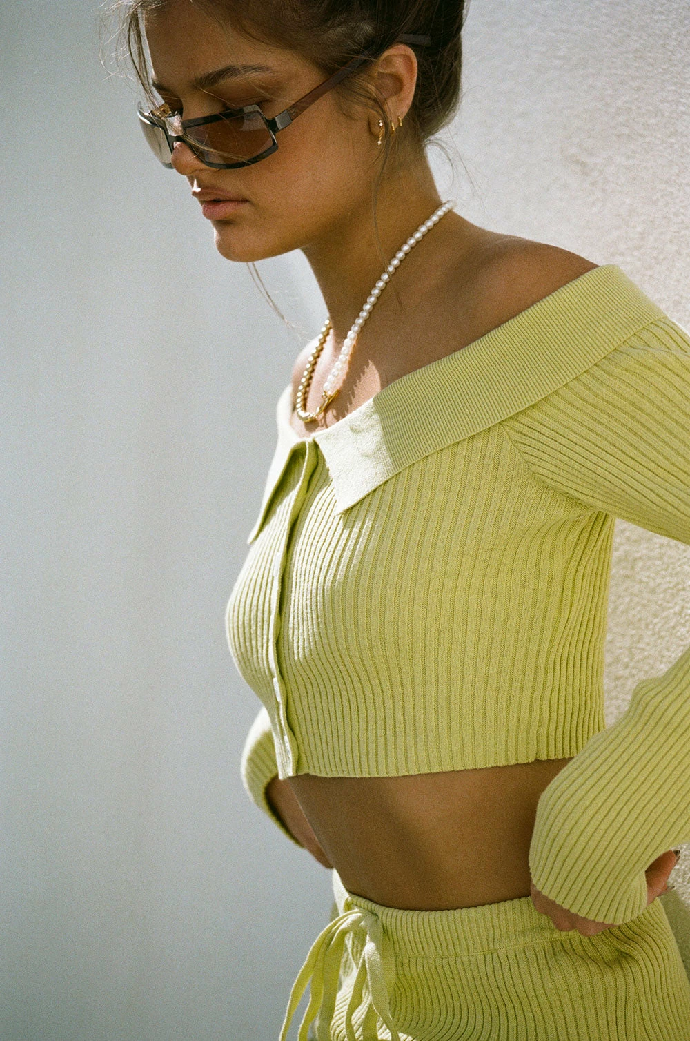 Stand out in our Briana Top, made from a natural cotton ribbed fabric in a chartreuse hue. It is an off shoulder style featuring collar across shoulders, full length sleeves and buttons down centre front. Pair with the Briana Midi Skirt or style with jeans! Designed exclusively by Sabo.