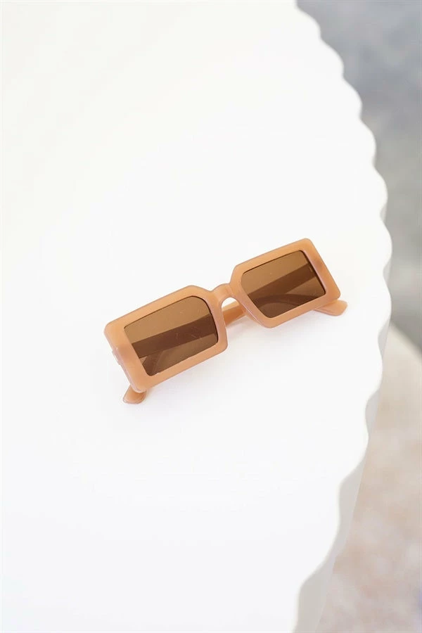 Add some edge to your outfit with the Campbell Sunglasses, featuring bold rectangular tan frames and brown lenses.