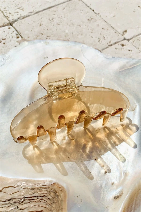 Perfect for an effortlessly cute upstyle, the Caramel Claw Clip is made from a transparent brown acrylic clam style clip. Add to your messy twisted bun for an instant vibe!