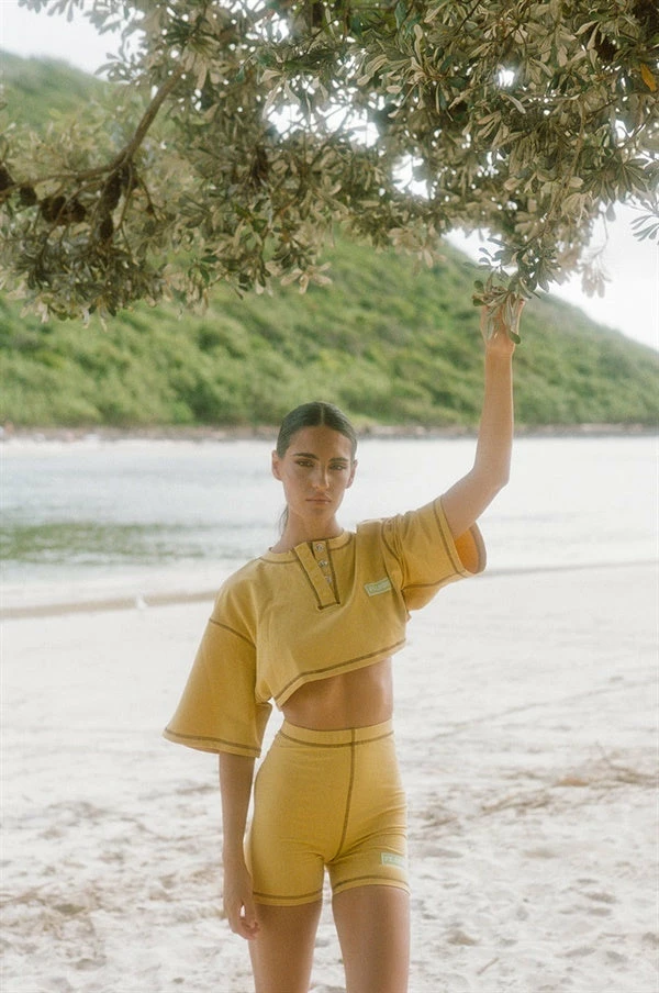 The Citizen Bike Shorts are made from a high quality thick cotton fabric in a mustard hue. They are a high waisted style featuring an elasticated waist and a signature FT. Louisa patch at front side. By FT. Louisa.