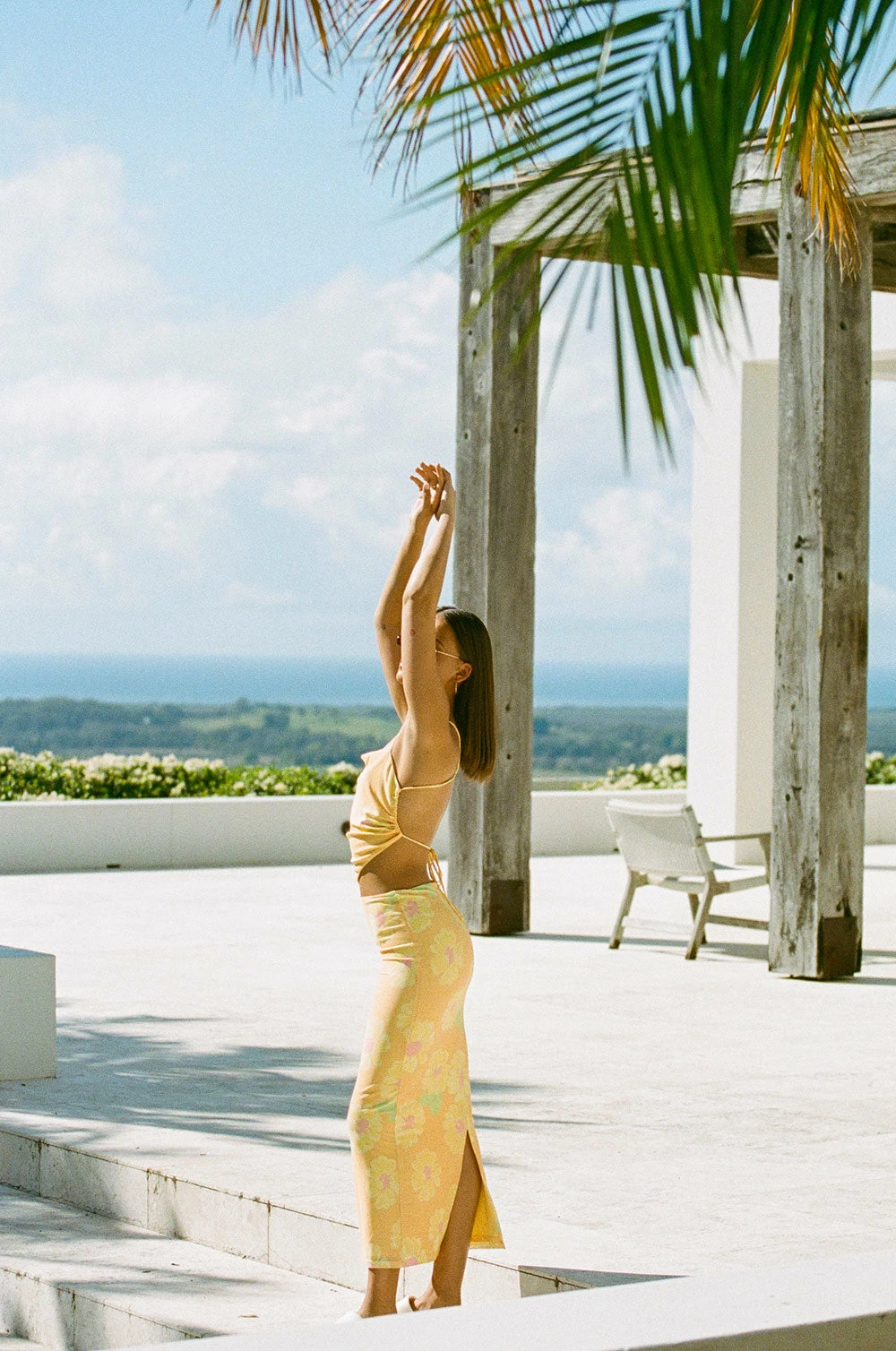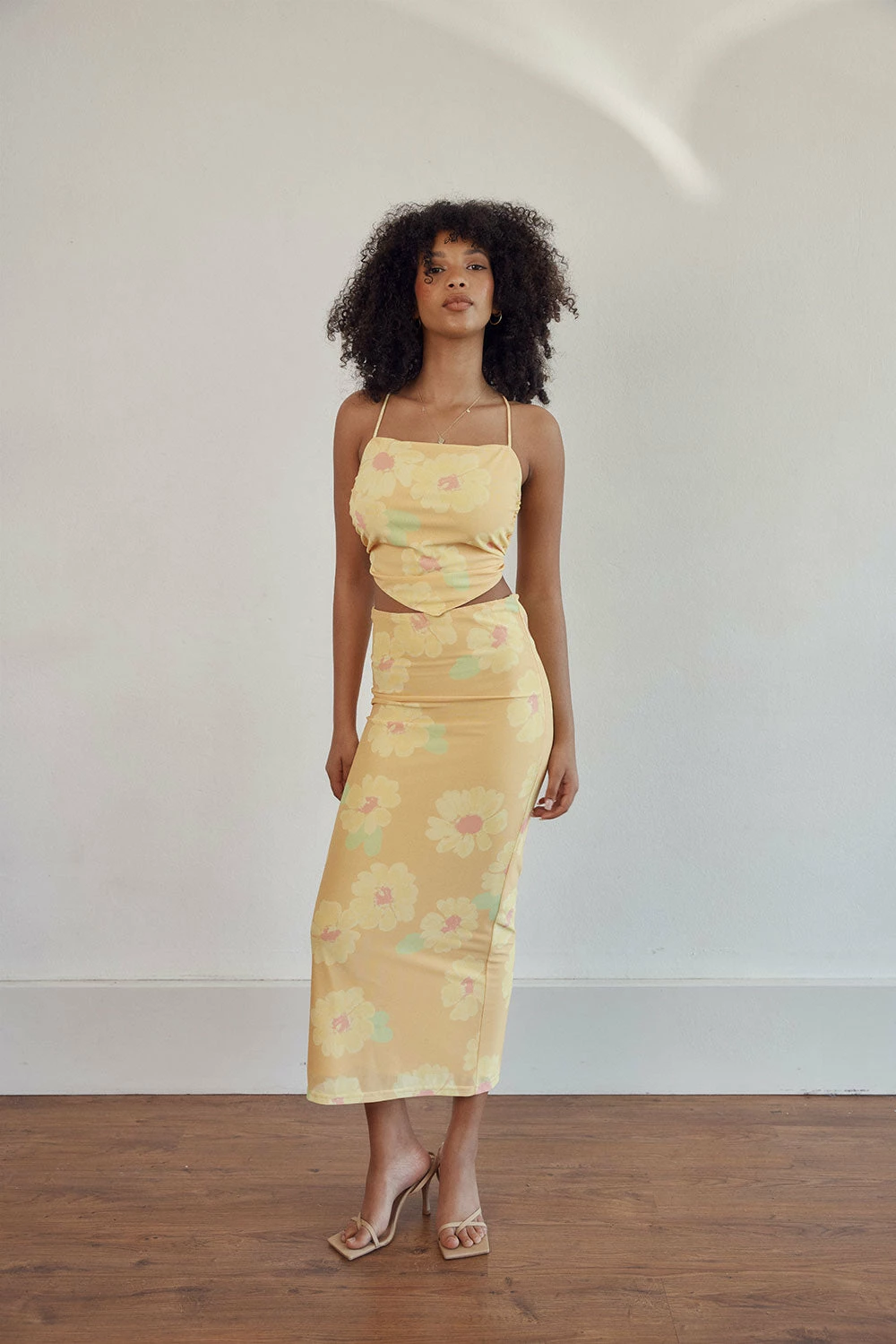 Wear it as a set or pair it back with a relaxed top! The Dalton Midi Skirt is made from our high quality stretchy mesh fabric with our exclusive orange painted flower print. It is a fitted style featuring a centre back split. Get the look with the Dalton Scarf Top! Designed exclusively by Sabo.