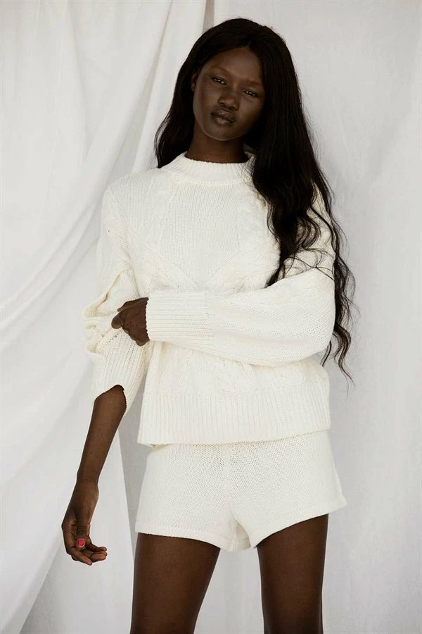 *THIS IS A FINAL SALE ITEM* The Demi Knit Top is a classic style made from a soft knitted yarn. It is a relaxed style featuring a ribbed polo neck, full length sleeves with ribbed cuffs and cable detailing throughout. Complete the look with the Demi Knit Shorts and 18K Vine Earrings! Exclusively designed by Sabo.