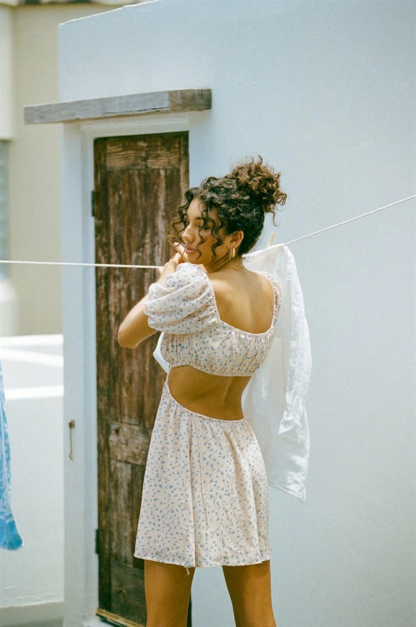 Our favourite style in a summer print! The Eilish Dress is made from a lightweight chiffon-feel fabric featuring flattering cutouts at waist, short puff sleeves, a flouncy skirt and tie detailing at sides of waist. Designed exclusively by Sabo.