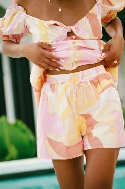 Our retro inspired print on a super flattering set! The Eliza Shorts are a high waisted style made from a high quality natural cotton fabric with our exclusive Ludic Fuego print featuring an elasticated waist with drawstring. Get the set with the Eliza Babydoll Top! Designed exclusively by Sabo.