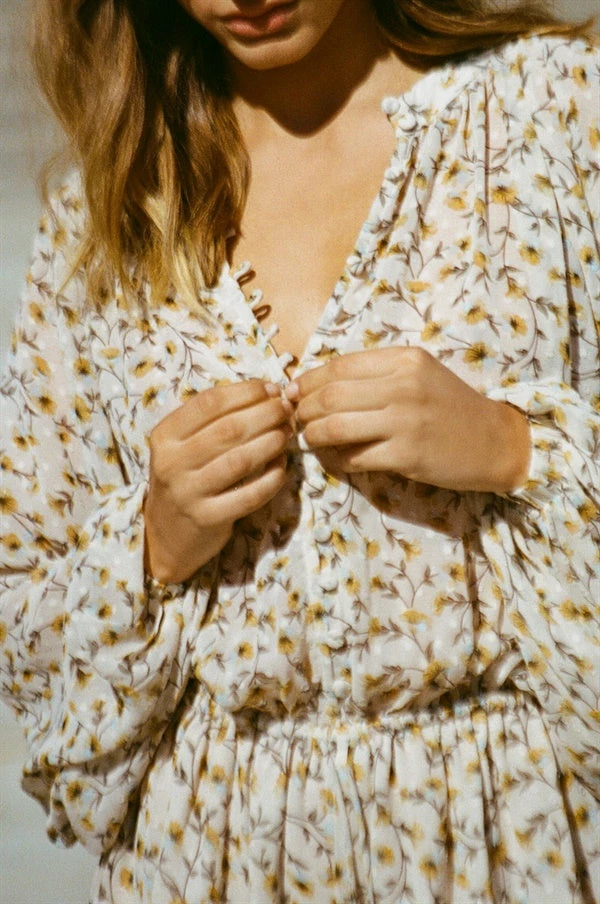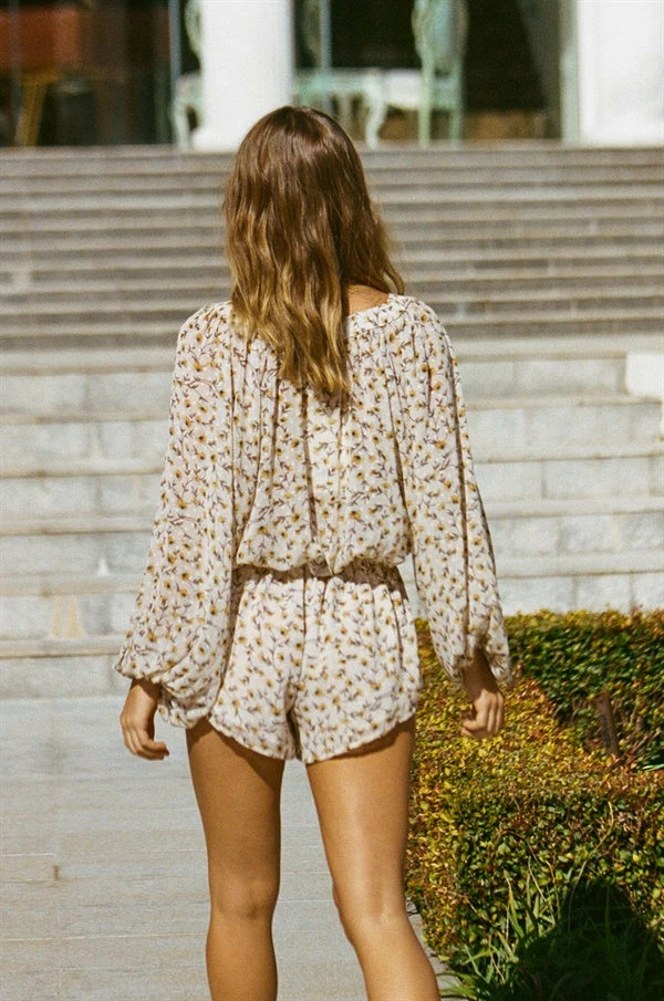 The crowd favourite Elsa Playsuit now comes in a lightweight fabric with a floral print throughout. It features covered buttons down centre front, full length puff sleeves, an elasticated waist with drawstring and high-low hems. Complete the look with heels and gold accessories for your next night out! Designed exclusively by Sabo.