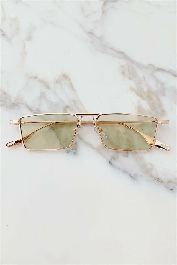 The 90’s inspired Elyse Sunglasses feature thin gold frames and green toned lenses. The perfect way to add some spice to your look!