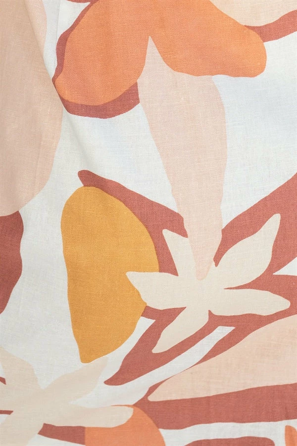 Dress it up with heels or keep it casual with sneakers! The Enga Dress is made from a high quality linen cotton blend fabric with our exclusive blush floral print. It features short puff sleeves, tie at centre bust, cutout at centre waist and buttons down front of skirt. Complete the look with the Strappy Kenny Heels and Juliette Necklace! Exclusively designed by Sabo.