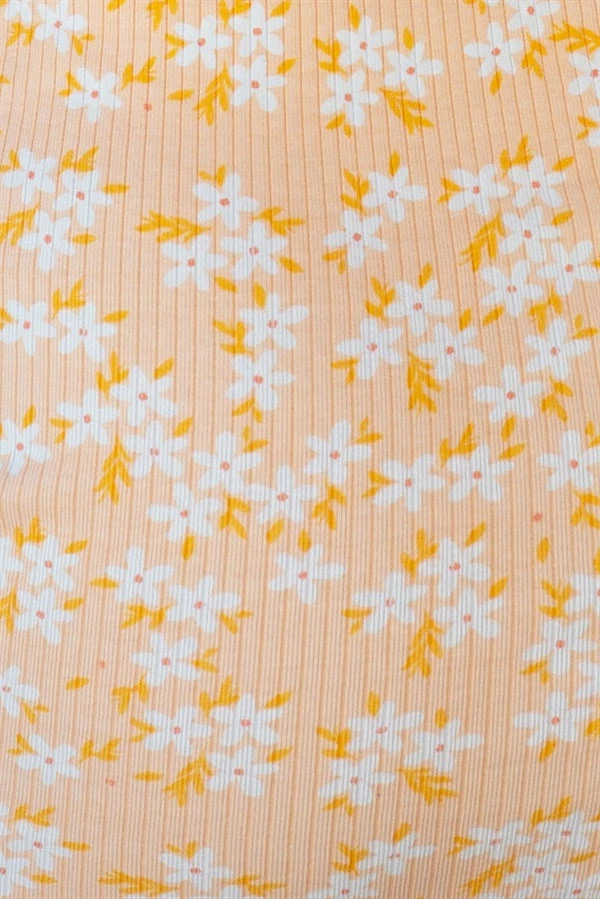 Dress it up with heels or keep it casual with fresh sneakers! The Esber Dress is made from a natural ribbed cotton fabric in orange with our exclusive floral print throughout. It is a fitted style featuring a cutout at shoulder, rounded neck and cutout at waist. Style with the Strappy Kenny Heels and Reyna Earrings for your next night out! Exclusively designed by Sabo.