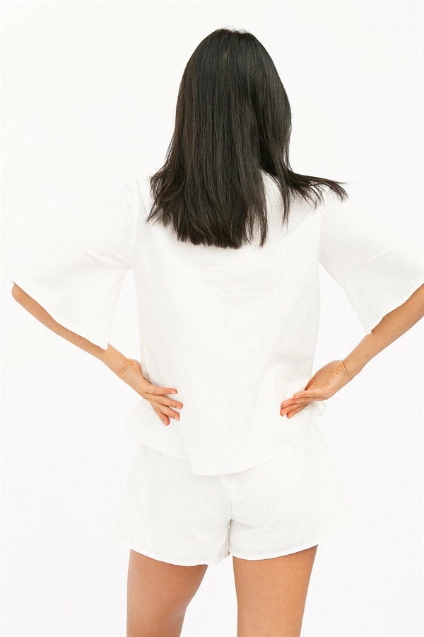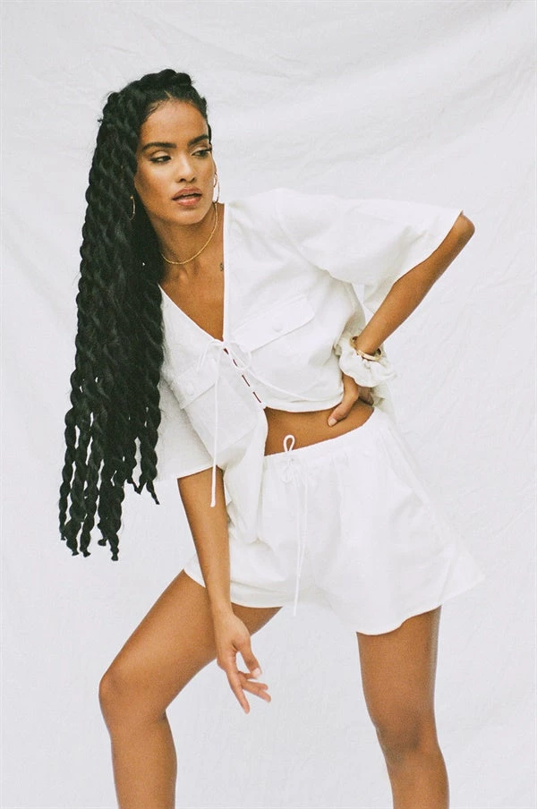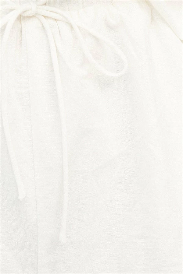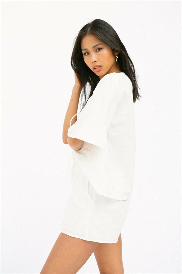 Wear it as a set or style them your way! The Everley Shorts are made from a beautiful linen fabric in an off white hue. They are a high waisted style featuring an elasticated waist, drawstring, twin pockets and high-low hems. Complete the look with the Everley Top and Mini Raven Backpack! Exclusively designed by Sabo.