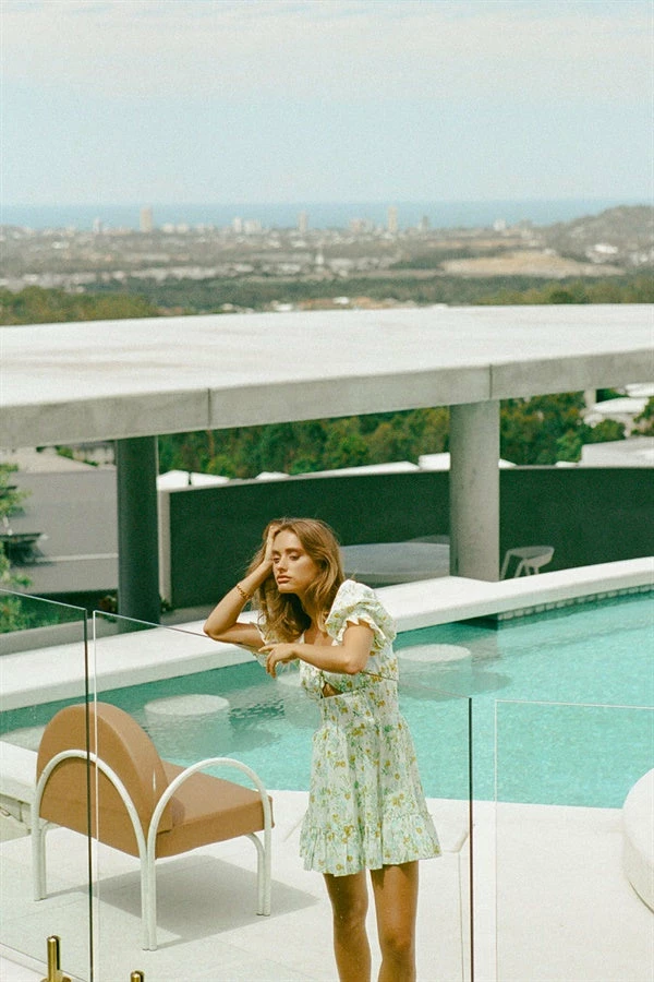 Inspired by vacations in the sun, the Hailey Dress is made from a high quality natural cotton voile fabric with our exclusive blue spring floral print. It features short puff sleeves with frill detailing, drawstring and cutout at centre bust, a shirred waist and flouncy skirt. Pair with the Rico Handle Bag and Radiance Necklace to take you from day to night! Designed exclusively by Sabo.