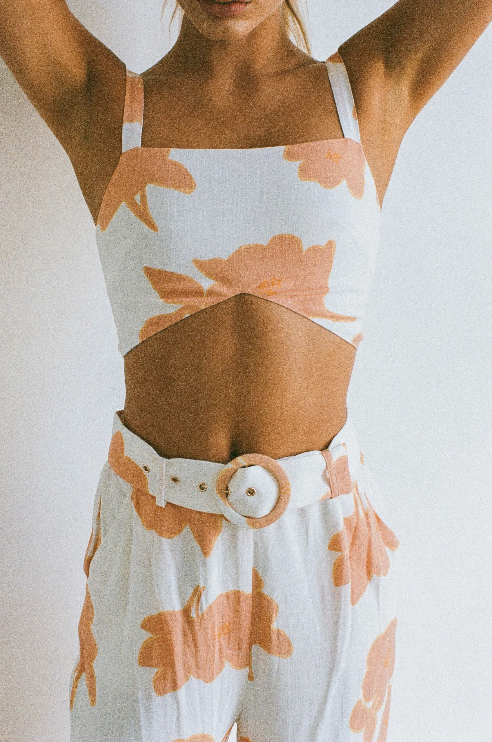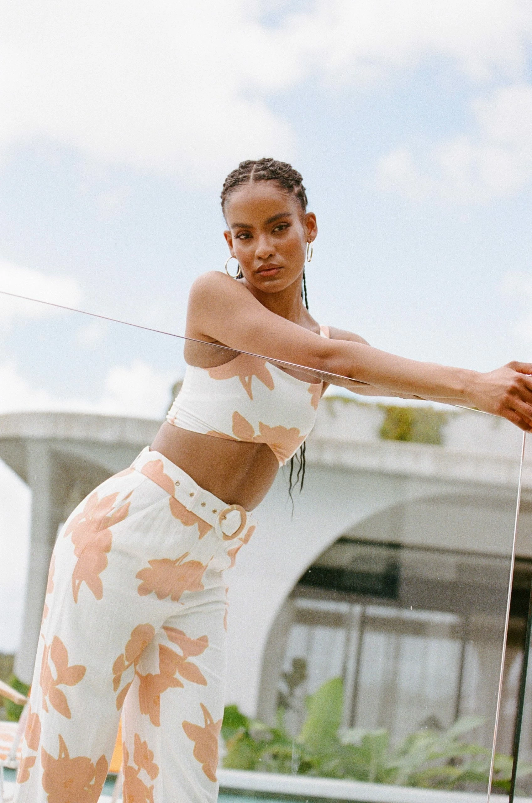 The retro inspired Hakura Pants are made from a stunning lightweight viscose fabric with our exclusive Floret print. They are a high waisted style featuring a matching belt and wide legs. Get the set with the Hakura Top and chunky slides. Designed exclusively by Sabo.