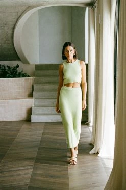Dress it up with heels or keep it casual with sneakers, the Heather Knit Skirt is made from a natural cotton knit in a fresh green hue. It features an elasticated waist and 7/8 length. Get the look with the Heather Knit Top! Designed exclusively by Sabo.