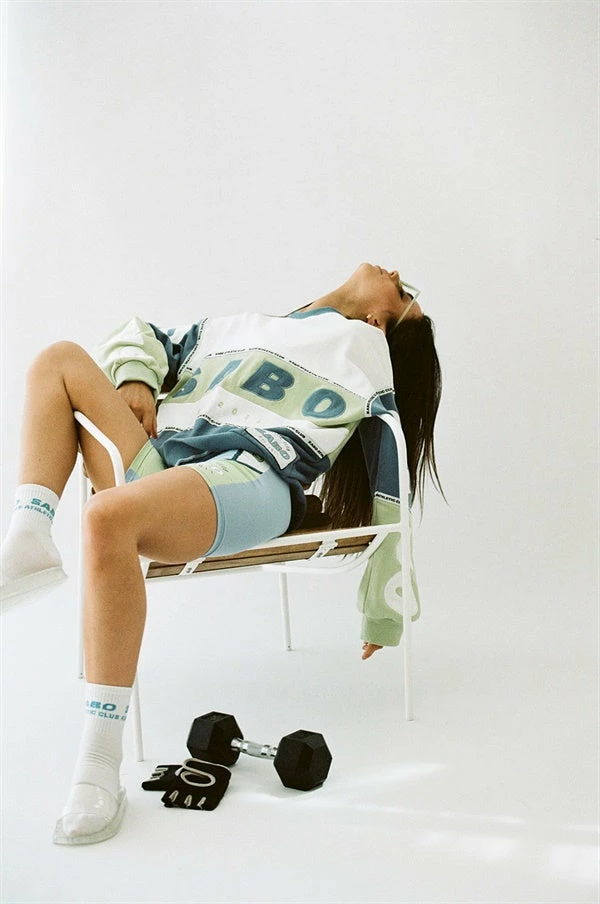 The vintage inspired oversized Imani Sweater is made from a natural terryback cotton fabric in white, dusty blue and green hues. It features a crew neckline, super slouchy full length sleeves and patch, tape and embroidered detailing throughout. Style with the Penny Athletic Shorts and Sabo Athletic Cap! Designed exclusively by Sabo.