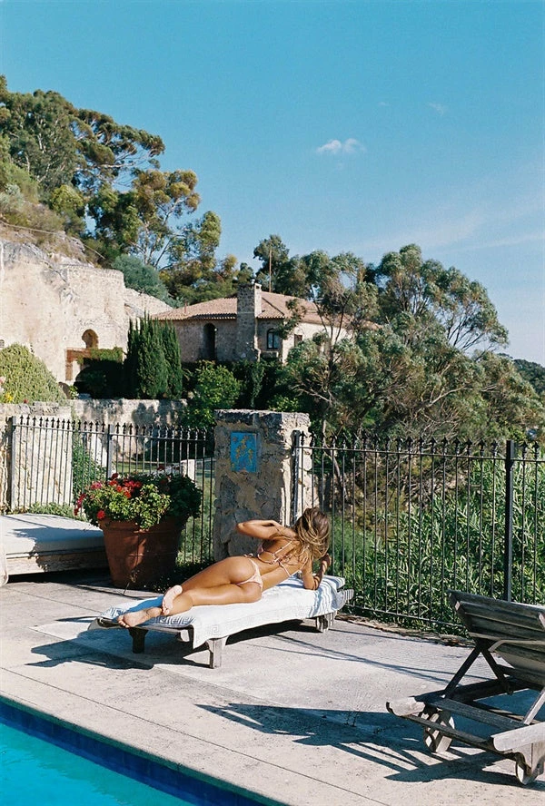Your vacation uniform has arrived! The Jasmine Tie Bottoms are made from a stretchy swim fabric with our exclusive pink retro floral print. They are a Brazilian cut that can be worn low or high rise and feature string ties at sides. Get the look with the Jasmine Tri Top, pink Breeze Cover Up and pink Retro Floral Scrunchie! Designed exclusively by Sabo.