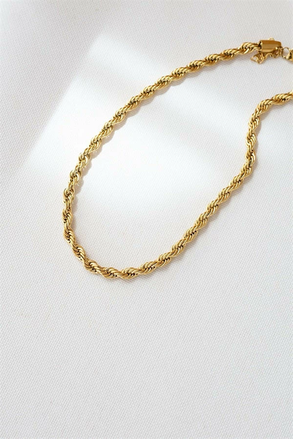 Make a statement with the Juliette Necklace! It is gold toned and features a choker length twisted chain. Perfect for stacking!
