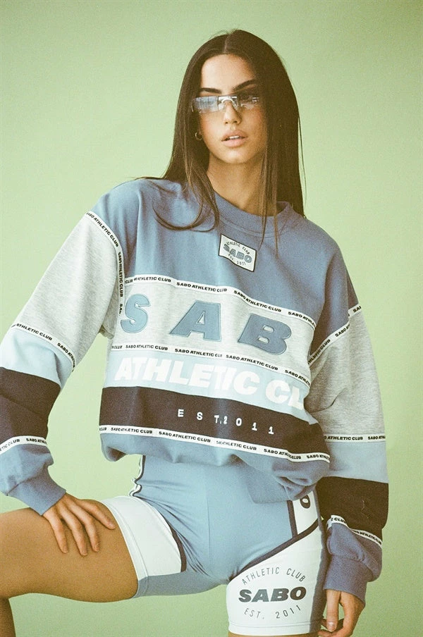 Retro inspired athleisure wear designed to flatter! The June Athletic Shorts are a fitted high waisted style featuring a wide elastic waistband with drawstring, contrast white panels and printed Sabo Athletic Club details throughout. Get the look with the June Sweater and Sabo Athletic Crew Socks! Designed exclusively by Sabo.