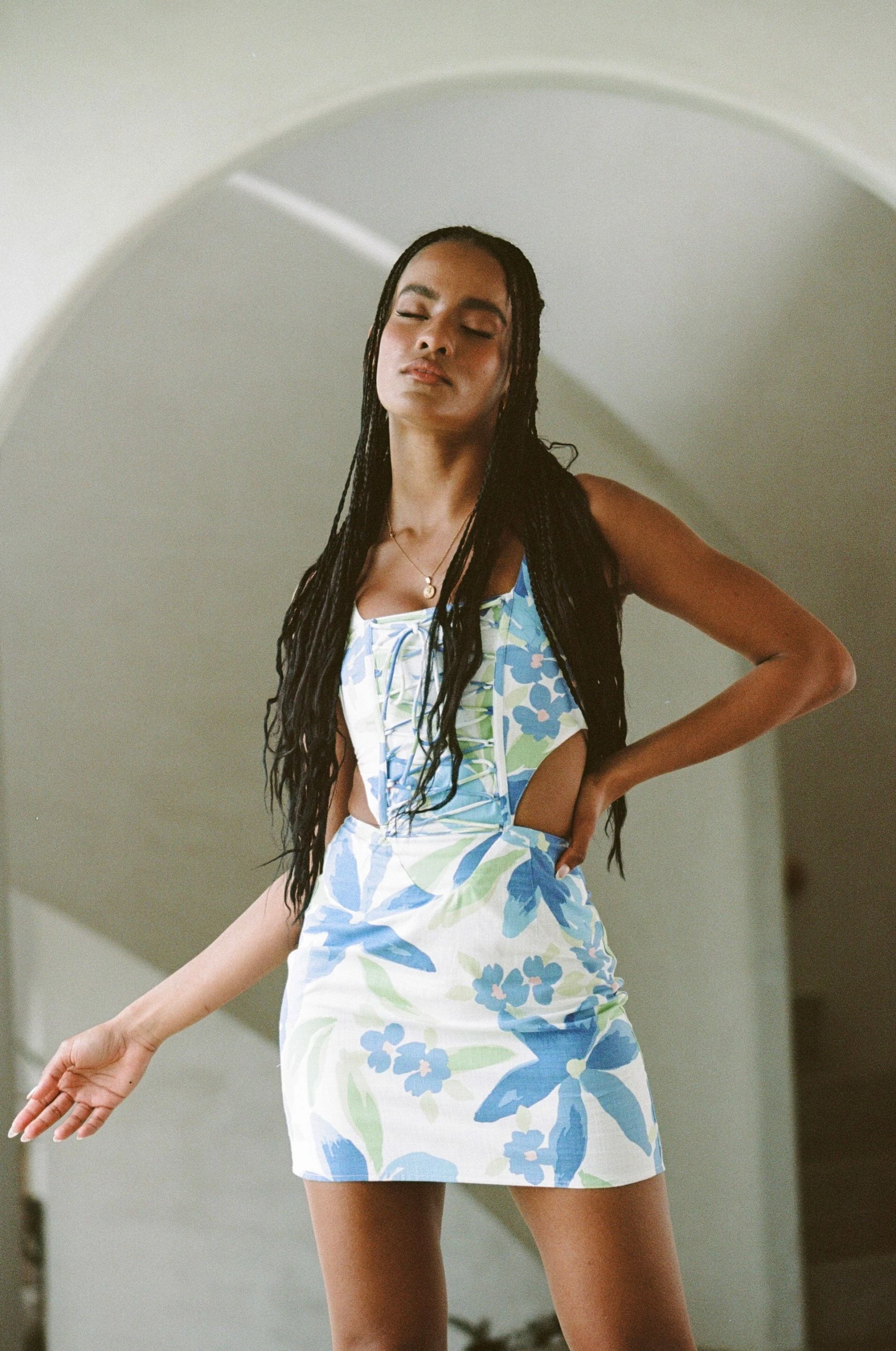 Details, structure and our favourite new print! The Lace Up Scorpios Dress is made from a natural cotton slub fabric with our exclusive Paradise Floral print. It features a straight neckline, lace up detail at bodice and cutouts at waist. Dress it up with the Strappy Rafaela Heels and Tiana Bag! Designed exclusively by Sabo.