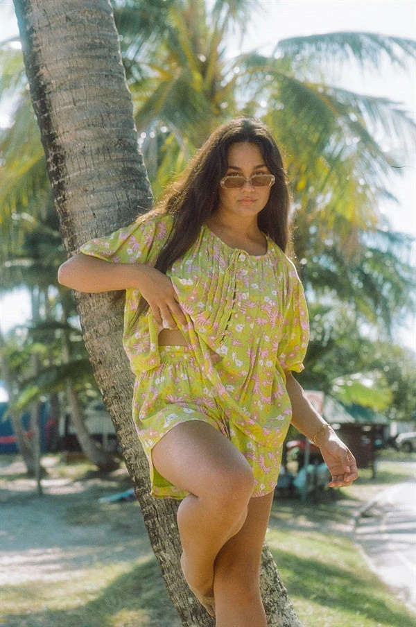 Obsessed with our new exclusive print! The Leta Shorts are made from a stunning viscose slub fabric with our exclusive bright retro floral print throughout. They are a high waisted style featuring an elasticated waist with drawstring and curved high-low hems. Get the look with the Leta Top, sandals and Adri Sunglasses! Designed exclusively by Sabo.