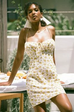 Inspired by sun soaked Santorini nights, the Lily Dress is made from a lightweight textured fabric with a floral print throughout. It is a simple cami style featuring thin straps, gathered bust and drawstring tie at centre bust. Dress it up with the Strappy Rafaela Heels and Rico Handle Bag! Designed exclusively by Sabo.