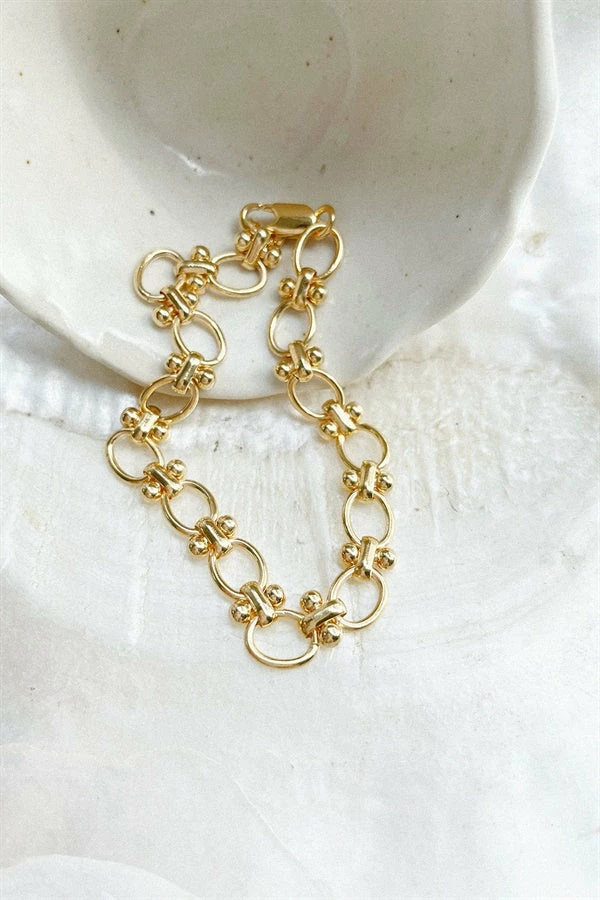 Perfect for stacking, the Link Dru Bracelet is gold toned and features loop link detailing and a clasp closure. Pair with gold earrings to take your outfit to the next level!