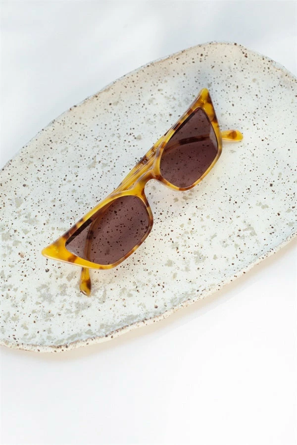 Add some edge to your outfit with the Lisari Sunglasses, featuring faux tortoise shell cateye frames and brow bar and brown toned lenses.