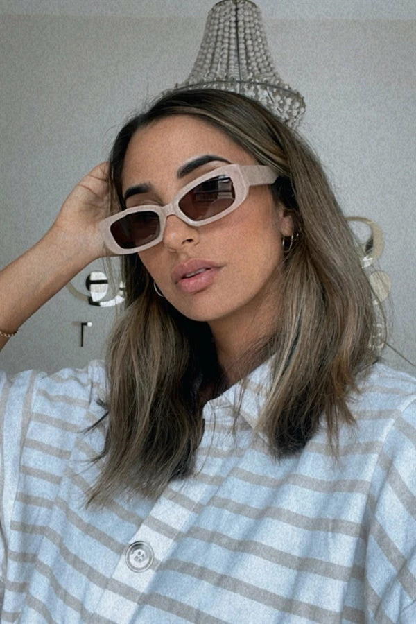 The Lista Sunglasses feature bold creamy frames and brown lenses. The perfect summer pair!