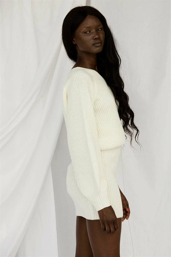 *THIS IS A FINAL SALE ITEM* Wear it as a set or pair it with jeans! The Lucia Knit Top is made from a soft ribbed knit in a cream hue. It is a one shoulder style featuring a long sleeve, contrast ribbed detailing at neckline, hem and cuff. Get the look with the Lucia Knit Skirt and Miller Bead Handle Bag! Exclusively designed by Sabo.