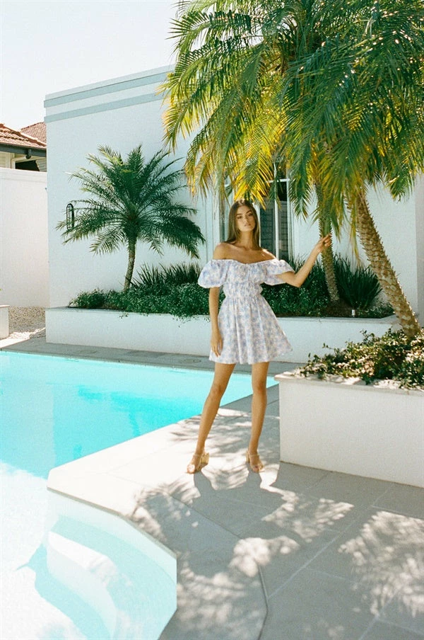 Dress it up with heels or keep it casual with sandals! The Milota Dress is made from a high quality natural cotton fabric with our exclusive lilac petal print throughout. It features short puff sleeves with ties, elastic detailing across neckline and waist and a flouncy skirt. Can be worn on or off shoulder! Designed exclusively by Sabo.