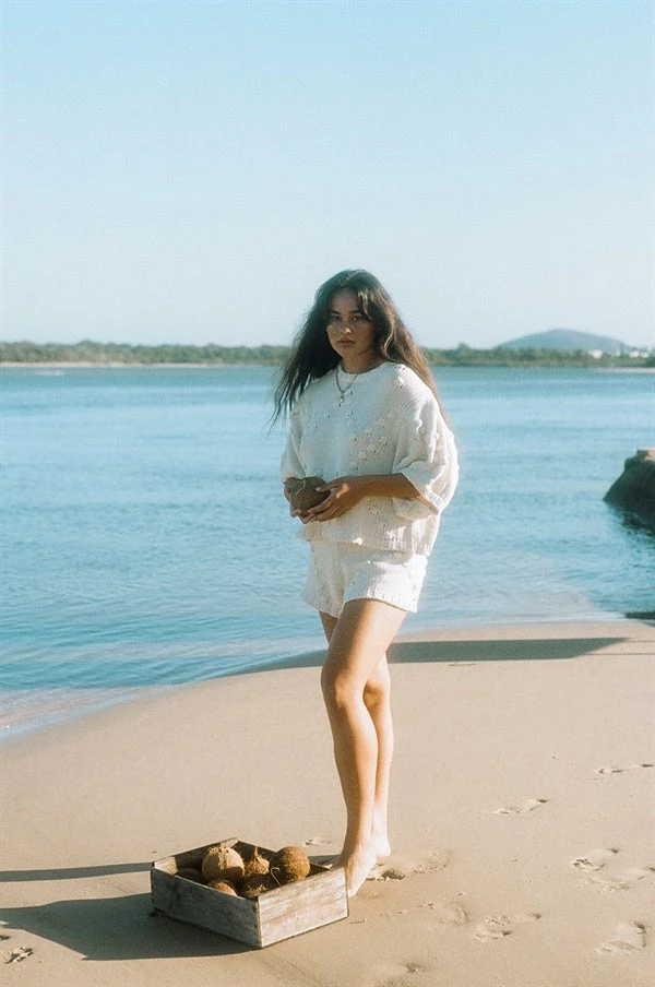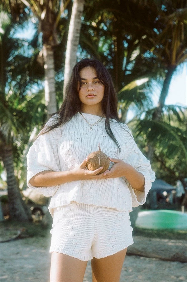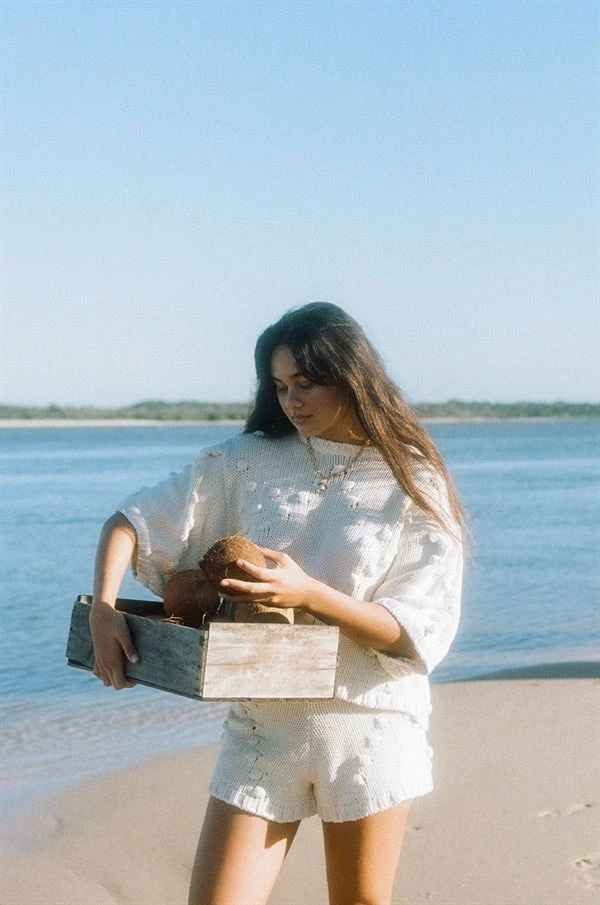 The perfect trans seasonal set! The Nessa Knit Shorts are made from a cotton blend knit in a creamy stone hue. They are a high waisted style featuring an elasticated waistband, high-low hems and bobble detailing throughout. Get the look with the Nessa Knit Top! Designed exclusively by Sabo.