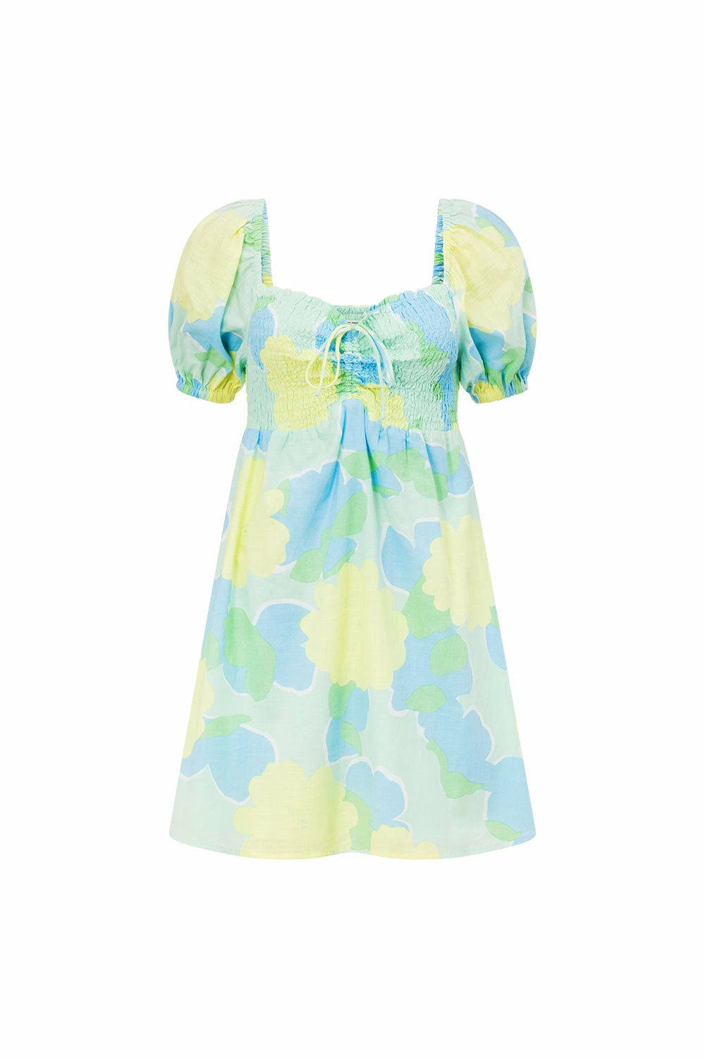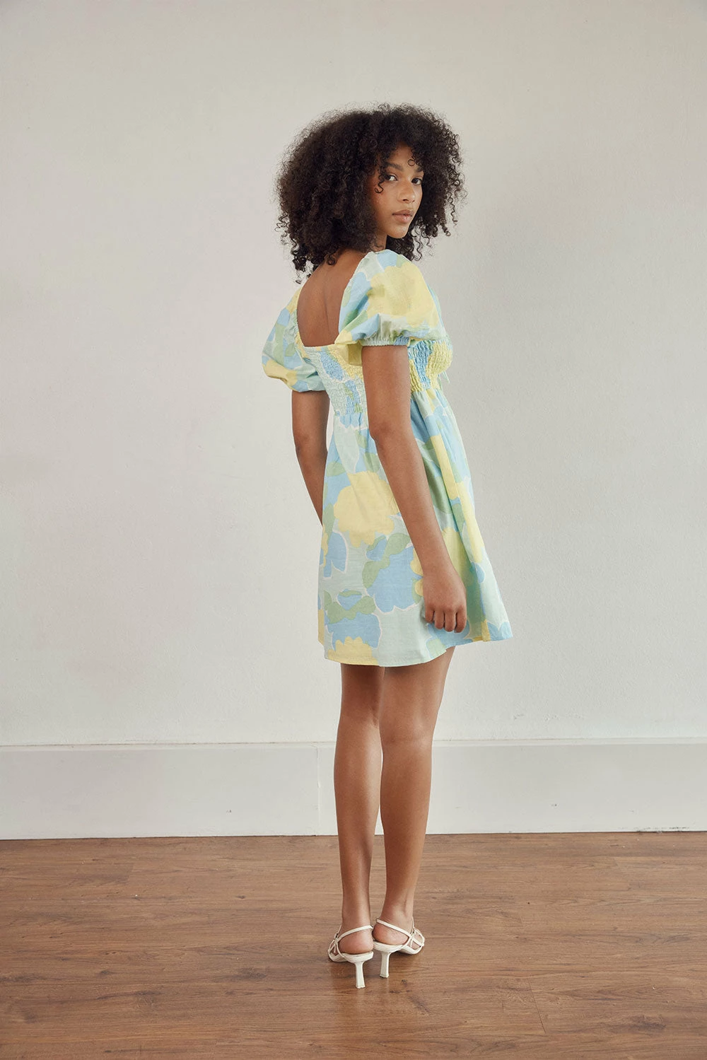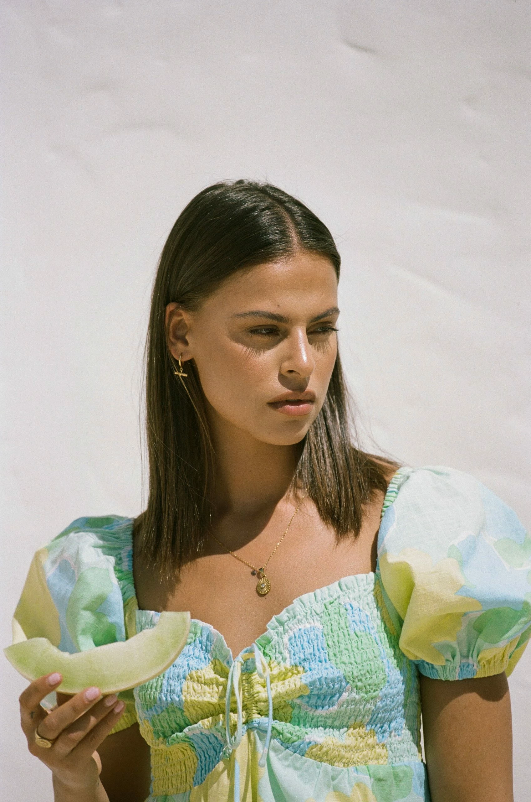 We are obsessed with our new exclusive Flutter Green print! The super cute Oura Shirred Dress is made from a high quality natural cotton slub fabric. It is a babydoll style featuring short puff sleeves, shirred bust with draw detail at centre and a flouncy skirt. Keep it casual and pair with sandals or dress it up with the Strappy Rafaela Heels! Designed exclusively by Sabo.