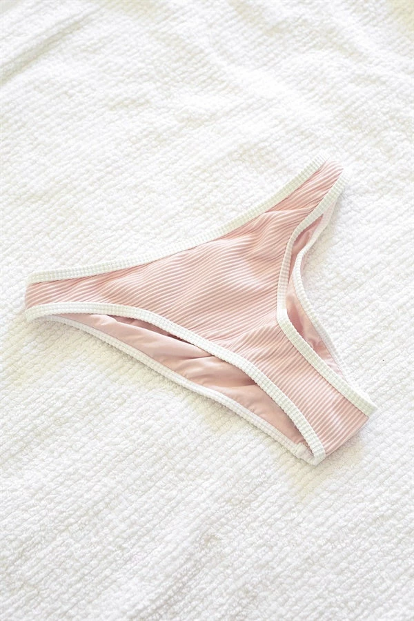 *THIS IS A FINAL SALE ITEM* Perfect for sun drenched summers! The Pink Lemonade Bottom is made from a textured ribbed fabric in a pink hue. They are a mid-high rise style featuring white trims. Pair them with the Pink Lemonade Balconette, Frayed Bucket Hat and SBO SKT Market Tote for your next beach trip! Designed exclusively by Sabo.