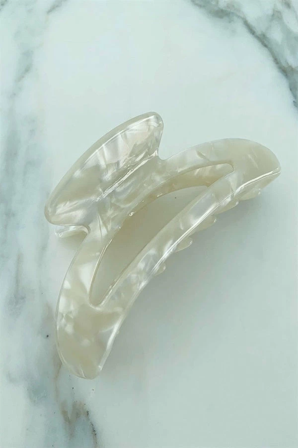 Perfect for an effortless up style, the Porcelain Claw Clip features a clam style closure in a white and ivory speck.