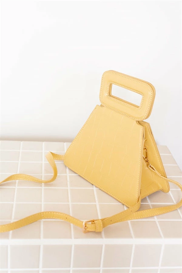 Spice up your outfit with the Rico Handle Bag, made from a vegan croc in a yellow hue. It features twin handles and includes a matching crossbody strap.