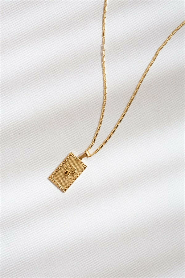 The perfect way to accessorise a simple outfit! The Rose Plate Necklace is gold toned and features a flat chain and rectangular pendant with contrast texture and rose detailing.