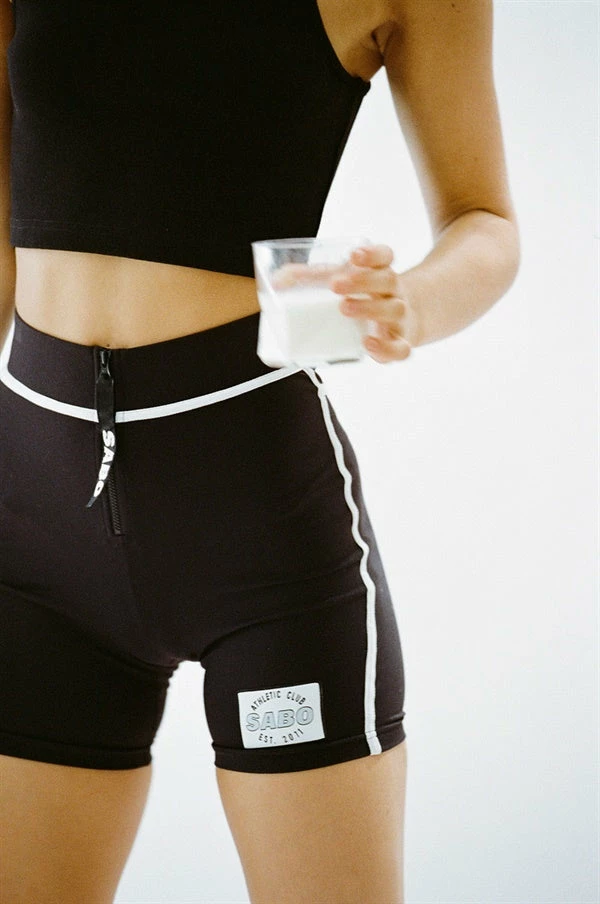 Chic athleisure wear designed to flatter! The Roulet Athletic Shorts are a fitted high waisted style featuring a wide elastic waistband, zipper at centre front, contrast white panels throughout and branded patch detail at leg. Get the look with the Roulet Athletic Tank and Sabo Athletic Crew Socks! Designed exclusively by Sabo.