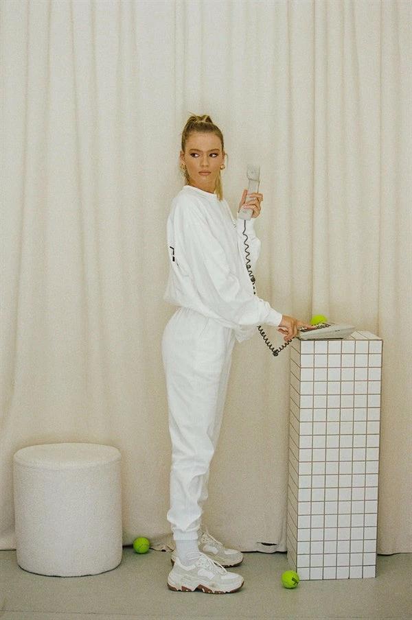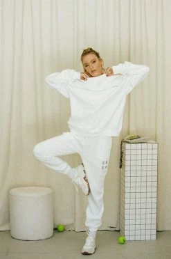 Lounging has never looked so chic! The Rue Sweatpants are made from a natural cotton terryback fabric in a fresh white. They are a high waisted style featuring an elasticated waist and drawstring, twin pockets, elasticated ankle cuffs and printed SBO SKT detailing. Complete the look with the Rue Sweater and SBO Crew Socks. Designed exclusively by Sabo.