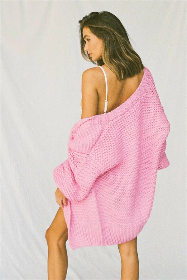 *THIS IS A SAMPLE* I am a one off Sabo sample of the Chunky Panama Cardi – Pink. I have a couple of small pulls on my front near my right bust. I cannot be returned, so I’m all yours to love and wear as your very own.