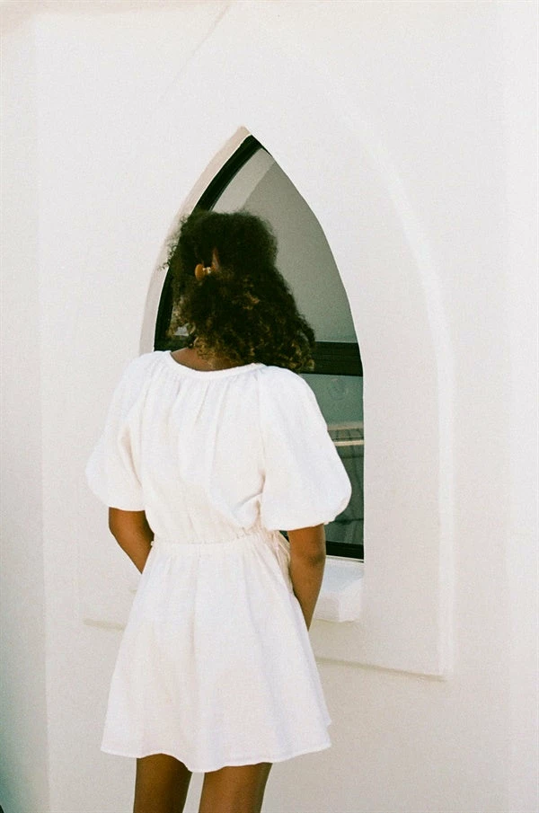 *THIS IS A SAMPLE* I am a one off Sabo sample of the Elm Dress. The right side of my waist tie has a small tear. I cannot be returned, so I’m all yours to love and wear as your very own.